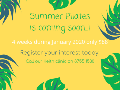 We run large group Pilates based classes which are great for general exercise, strengthening and stretching. These classes are generally not claimable on private health. In Naracoorte we run a Pilates class just for men which is very popular. Coming up in January, we have some come and try Pilates sessions if you'd like to see what it's all about!
